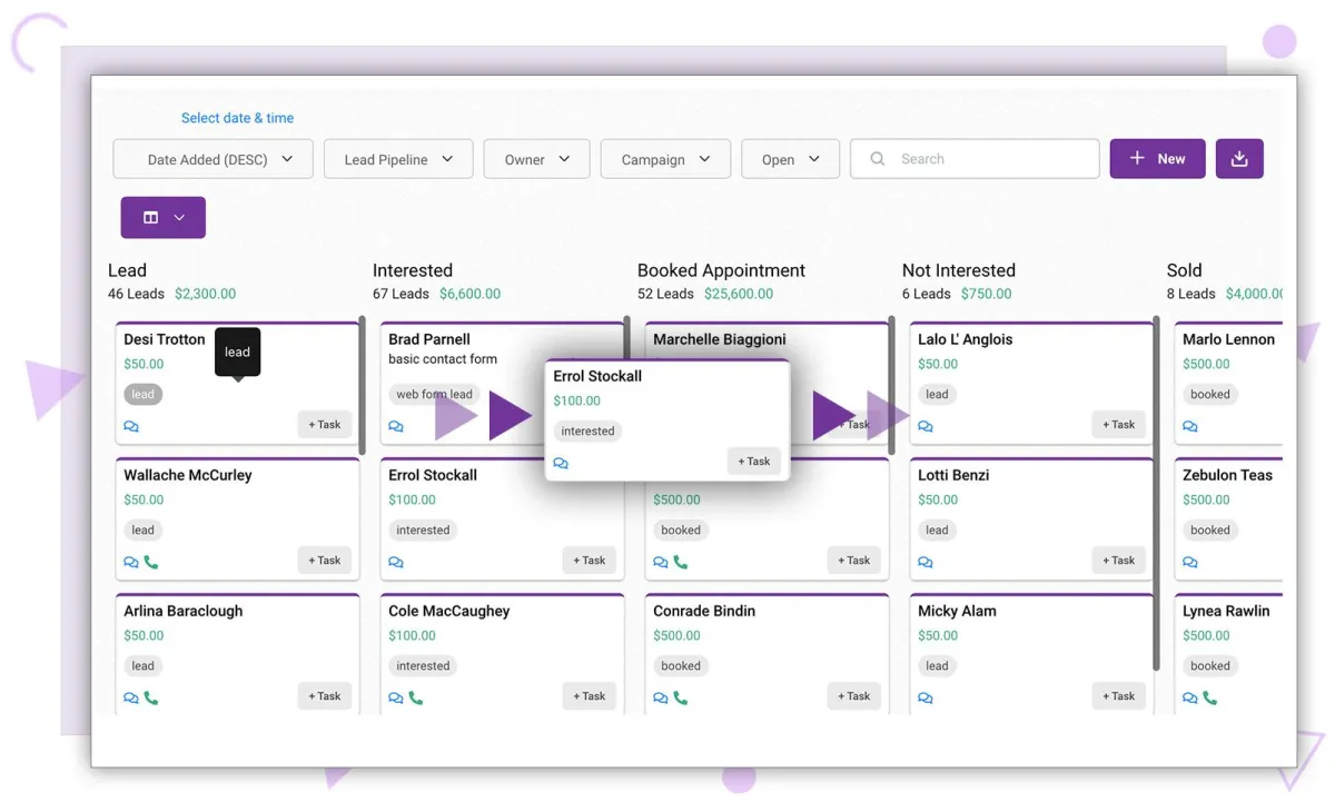 Drag And Drop Leads & Clients In One Place. Our CRM Captures Leads, Adds Them To Your Pipeline, And Visualizes Your Revenue!