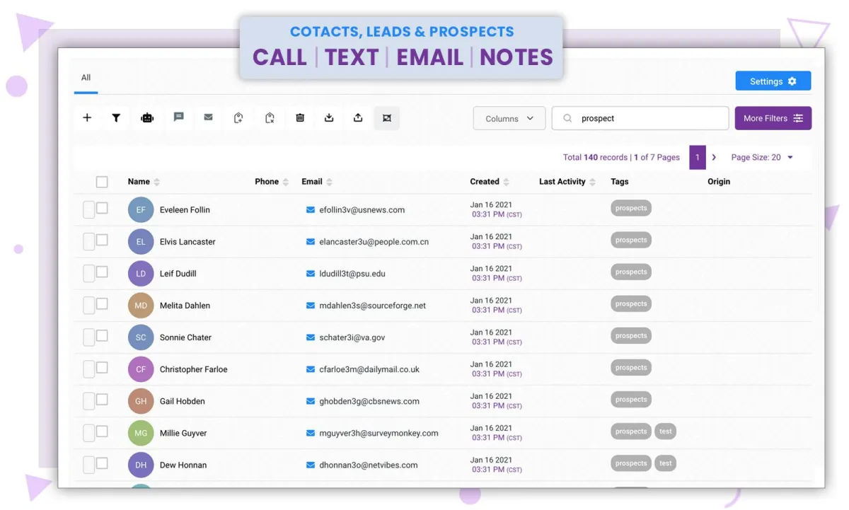 Manage All Your Contacts, Leads, And Prospects In One Place! See Last Activity, And Call, Text, Email, And Set Appointments In One Easy Spot.