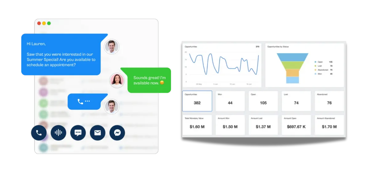 Automatically message leads via voicemail, forced calls, SMS, emails, FB Messenger & more!